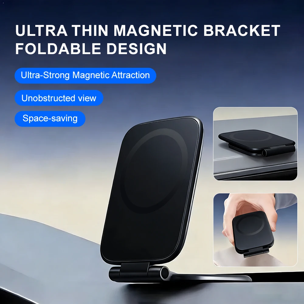 2026 New Dual Car Magnetic For Magsafe Phone Holder Foldable Anti-shake Navigation Vehicle Mounted Mobile Stand Ultra thin